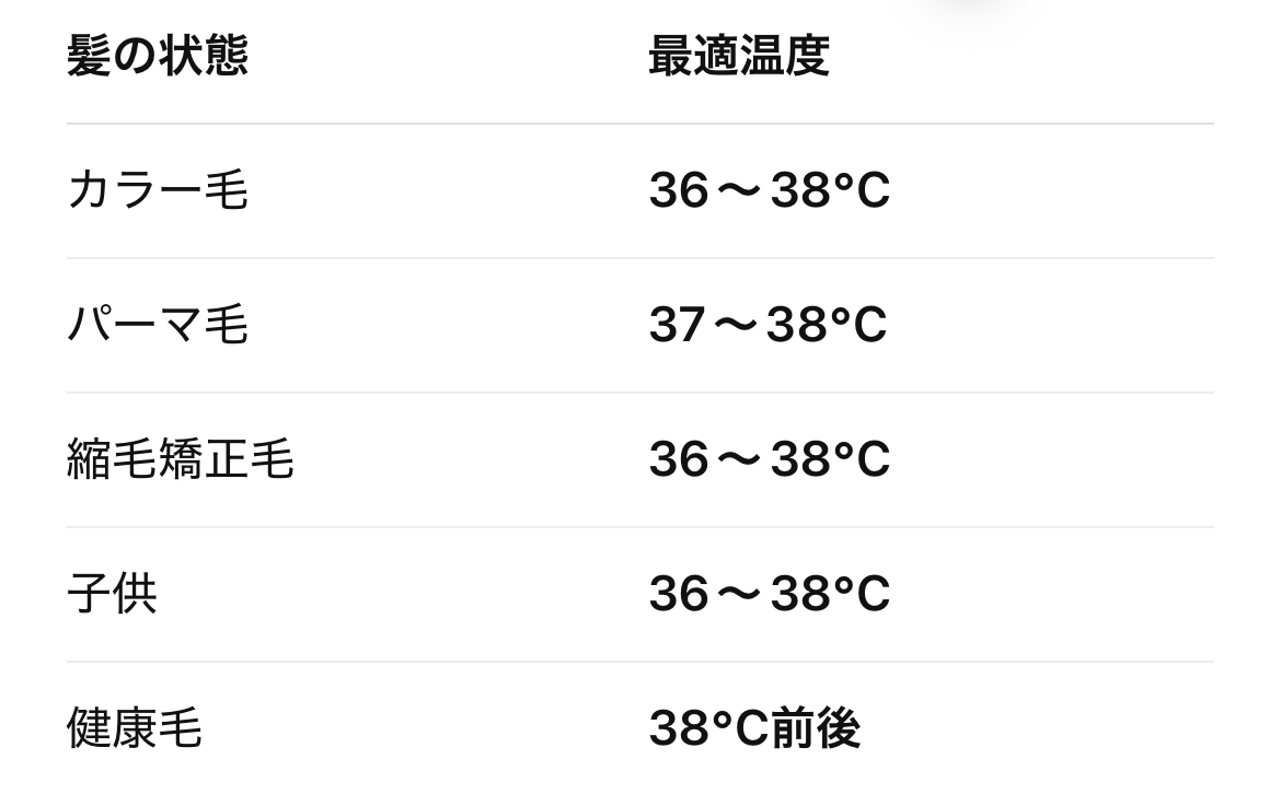 しかし実は、髪の状態・年齢・施術履歴(カラー、パーマ、縮毛矯正)によって、最適な温度は変わるんです。