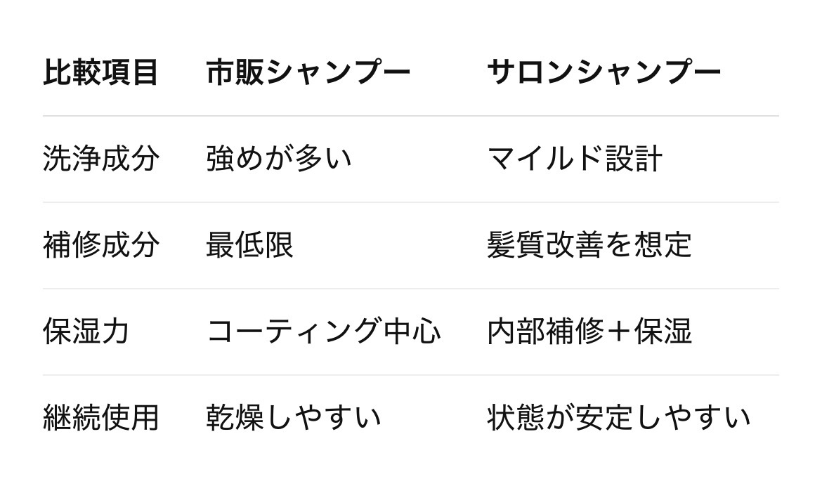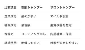 市販シャンプーとサロンシャンプーの違いは、価格ではなく成分設計と考え方の差です。
